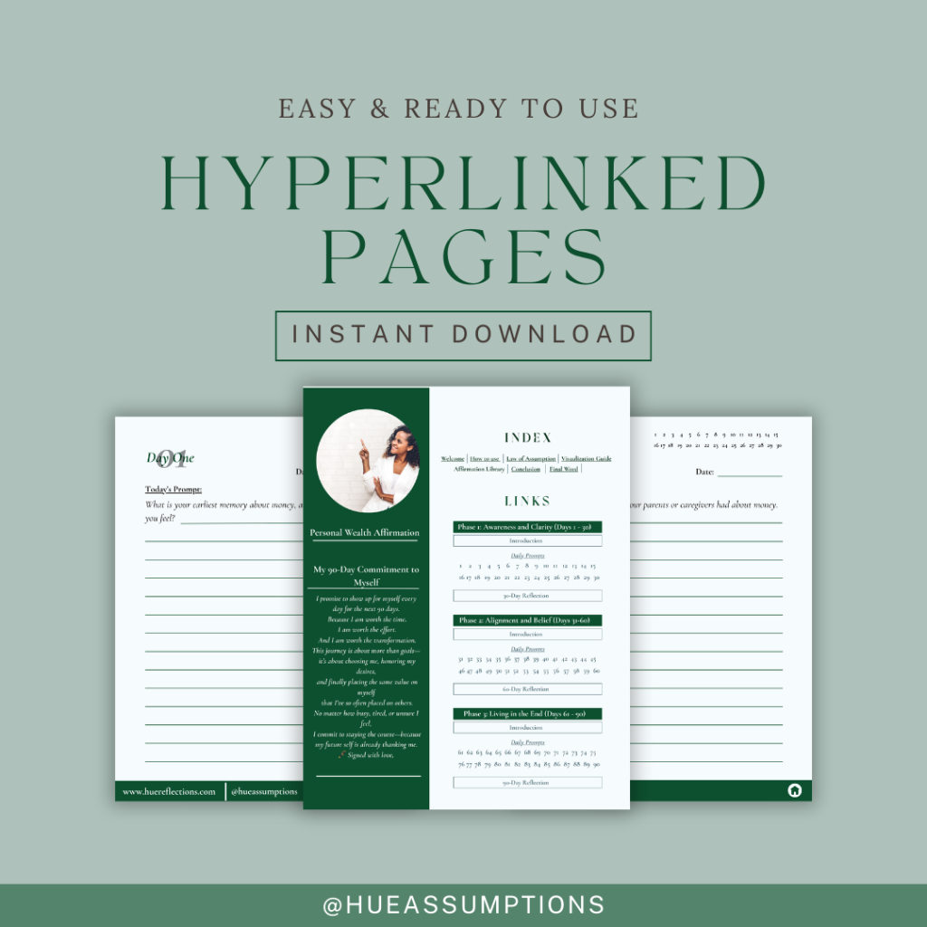 The Wealth Within Reach: 90-Day Hyperlinked Digital Journal is designed to gently rewire those patterns.